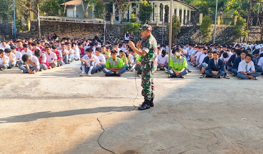 Sumedang (Transtwonews).-Sebagai Upaya bentuk sikap Disiplin para Siswa, Babinsa Koramil 1014/Cimanggung Kodim 0610/Sumedang Korem 062/Tarumanagara Serka Beny bersama Sertu Sumpriam Budi Berikan materi Wawasan Kebangsaan (Wasbang) dan dilanjutkan latihan Peraturan Baris Berbaris (PBB) kepada Siswa Siswi SMK Perkasa,di Dusun Cikandang RT 02/09 Desa Sindanggalih Kecamatan, Rabu(14/09/2022)