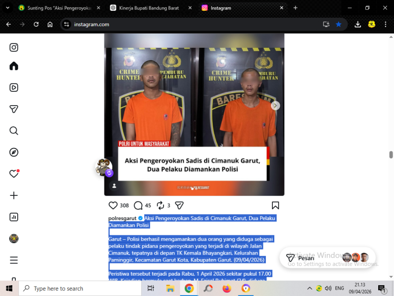 Saat ini, kedua pelaku tengah menjalani pemeriksaan lebih lanjut di Polsek Garut Kota dan akan diproses sesuai hukum yang berlaku.