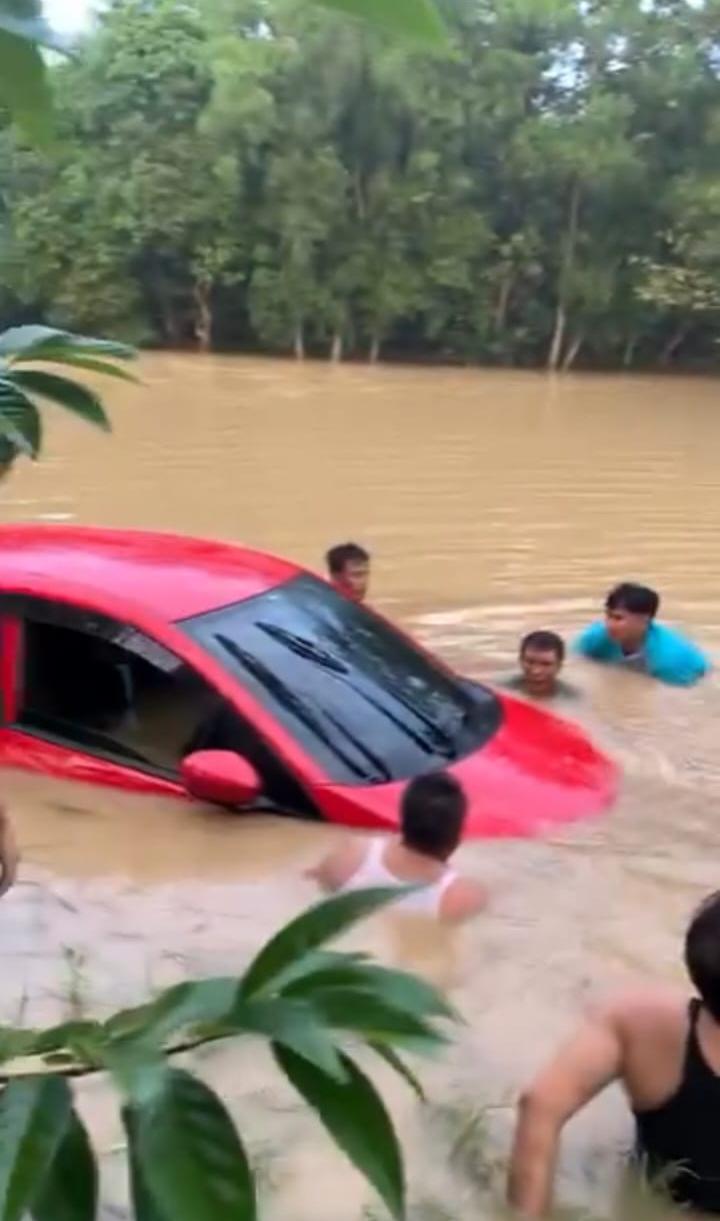 Satu unit mobil angkut ayam dilaporkan terseret arus banjir, saat itu Debit air masih tinggi dan proses evakuasi + pendataan masih berjalan.