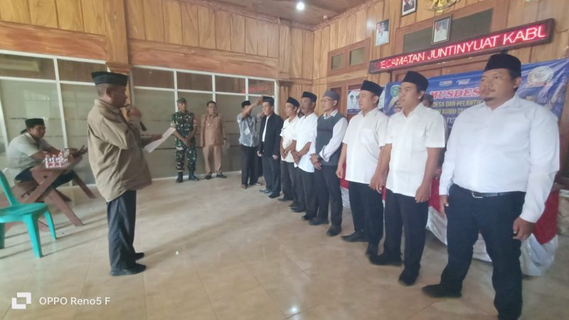 Acara pelantikan Panitia Pemilihan Kuwu Desa Juntiweden Kecamatan Juntinyuat sesuai dengan Peraturan Bupati ( Perbup ) Nomor 30 Tahun 2025 dilakukan oleh Ketua Badan Permusyawatan Desa ( BPD ) Desa Juntiweden.